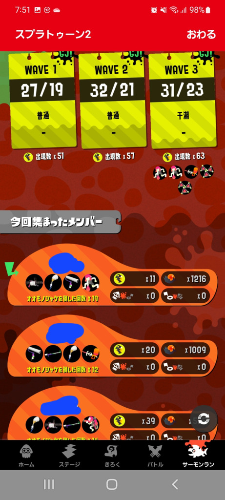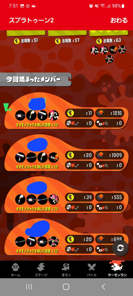 家人とコンビでやってたやつだからあんまり参考にならんかもしれんけど、火力的にはこれくらいで盤面安定する感じ。