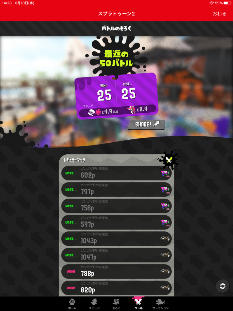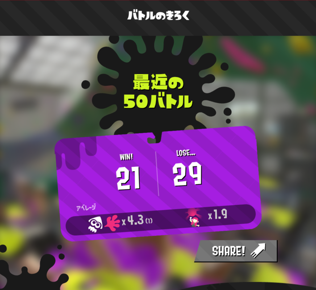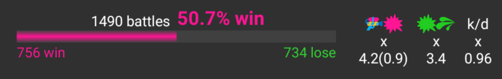 直近50戦だと1枚目の写真の勝率だけど、対戦全体の勝率は2枚目。 全体で見れば50%くらになるんやね。