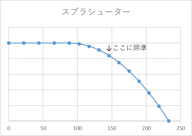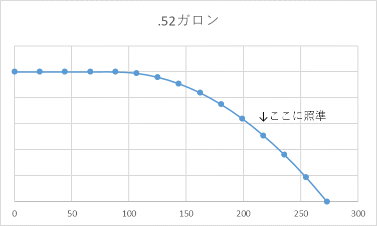 上から2本目ぐらいの下エイム(内部的にはそれが水平なんだろうけど)しないと当たらん