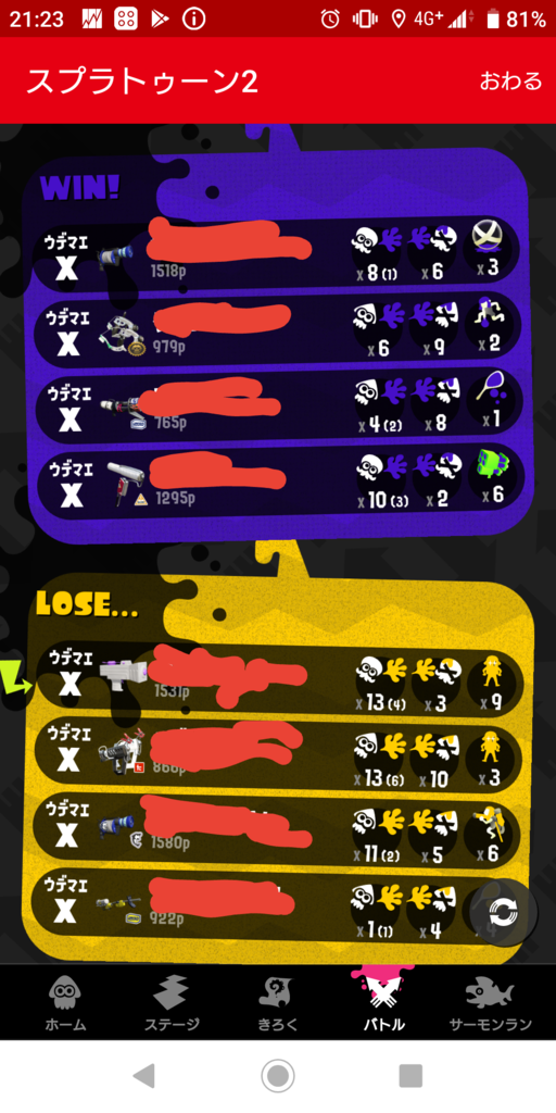 ガチアサリ2300くらいでデカアサリ3つあって一人やられたから持ってなかったリッターに投げたら捨てられた「は?」ってなった