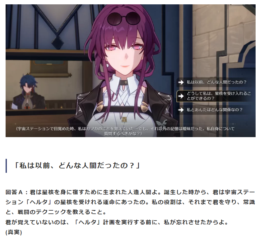 展開早いから刺された時に驚きよりは呆気に取られた感はあったね(その後の開拓者の選択肢に「急すぎる」とかあったから公式も自覚はありそう)。3バージョンに詰め込む関係上仕方なかったのかなと想像したし、ホタルのビジュアルが良いから許されてる感はある