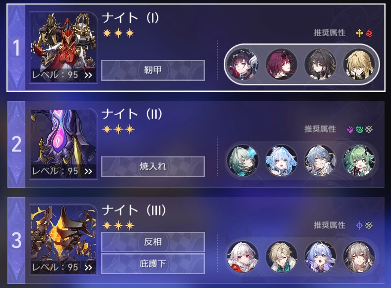 組み合わせ試してたらこんな編成でナイト星9取れたよ(セイレンスルアンクラーラが1凸、ロビンアベが2凸)。全員無凸のアナHCで焼入れごり押せたしクラーラもカウンター楽しいし持続は3ステージどこに出しても余裕だった