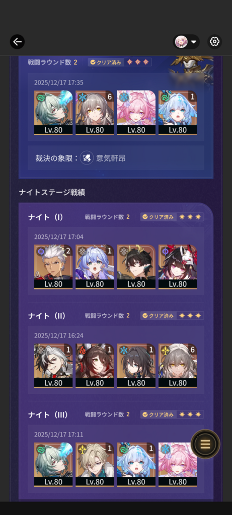 手持ち的にナイト3が一番きつかったな 2凸餅黄泉/1凸餅トリビー/虚言銀狼/トレンド丹恒でギリだった