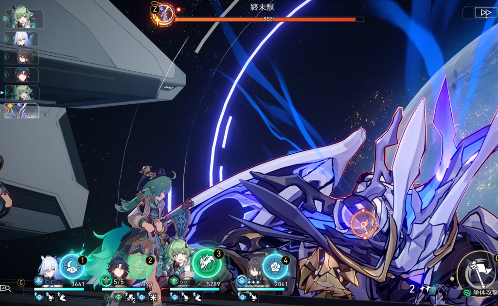 鏡流の強化スキルで5層達成、同時に終末獣がダウン という流れでこの状況になった