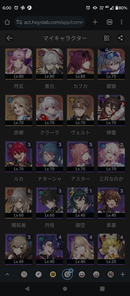 銀狼あるし育ててるみたいだから非雷弱点側に景元停雲銀狼符玄できるね。リンクスクラーラは強いけど画像みるに育成が散漫なのでナタやなのかとクラーラで誤魔化しつつ主力のLv軌跡遺物をまともにしたほうがいいです