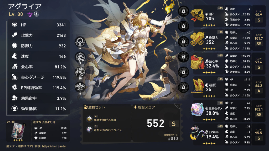 追撃パ用にロビンの遺物厳選をしているのですが、