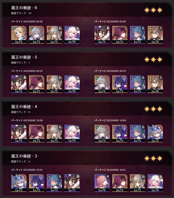 武器は全部☆4でこんなもん。なのか完凸あると、白露ジェパ羅刹なくてもこれくらいは行ける。