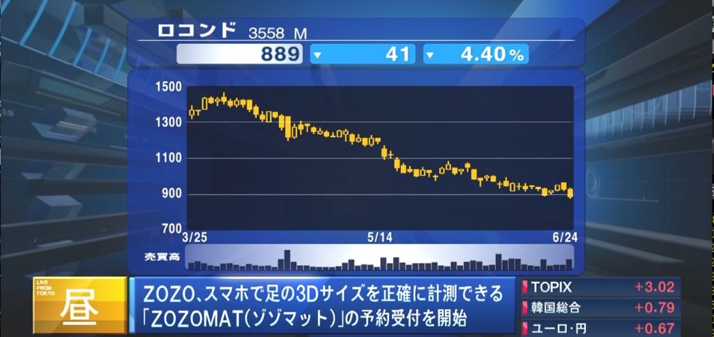 ロコンドの株価www。合わなかったら交換します。本日4%以上の下落。