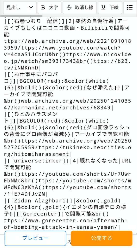 表一欄に記載すると、スマホで編集するのがめんどくさい。