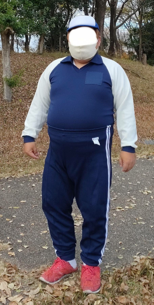 2本線ジャージにしては珍しいスタイル ジャージタイツはホッピングタイプ タイツのみ白2本線 ユニチカ製で今もH県H市で現役