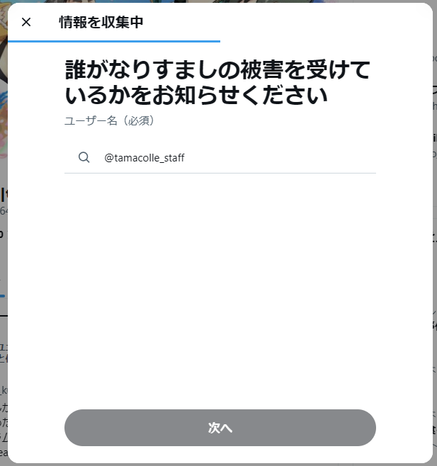 Xの偽アカウント報告しようとしても肝心の本物が候補にでてこないから先に進めないんだよね