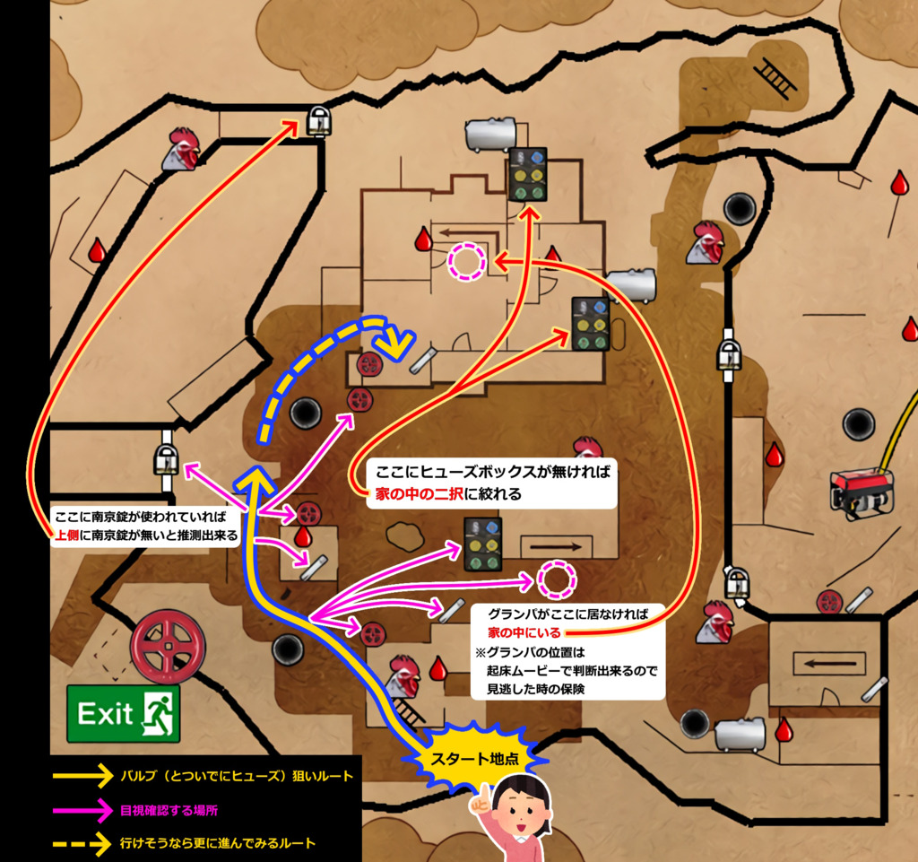 (ゲーム序盤は扉から外せた南京錠が、途中からコックでも外せなくなったことは経験があり、ゲーム実況者でも同じ経験がありこの推測をしている方がいました。私も同じ推測をしています。)