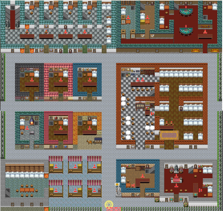 「v1.1.9.0」でマイタウンに勧誘できる人数をオプションから60人に増加させることが可能になったので、マイタウンに勧誘できる全種類の職種をフォローできる店舗数を確保しつつ尚且つ60人以上の寝床を確保されている街を作ってみました。適当に調整や改変して使って下さい。