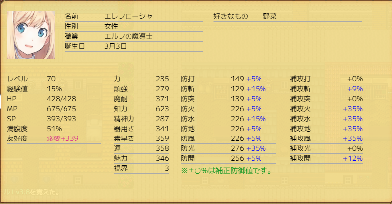 (※引継ぎ前は、ショートイベントで光の比率耐性が2上昇しています)