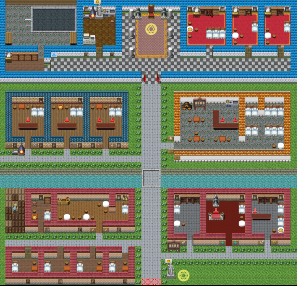 自分が生活と生産をする創造者用のお城のある街と 最低限のギルド、鑑定屋、教会以外は飲み屋、宿屋、ホテル、酒屋しかない飲み屋街を投稿しました。