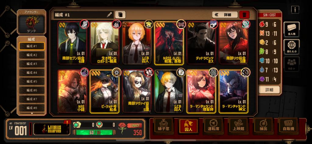 相手3体とEGOさえ打てればいつでも次に特殊スキル3が打てると思うとかなり使い勝手が良い印象になってきた。