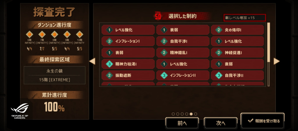 逆に後から遊べる鏡ダンジョンというコンテンツでは出血などのカテゴリが特に重要になってきます。