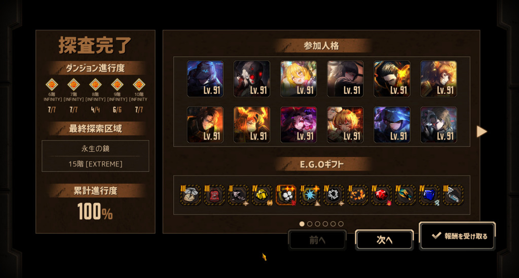 隠しボスに出会えなかった屑運で切り取られた記憶が有効な卯ファウ・君ル以外はマッチ勝利不可の状態に追い込まれたけどかろうじて15層クリア 午イサンはバリアのおかげでガチメインタンクだったし、ダメージ量のインフレによりマッチ可能ガードが輝いてた マッチに勝てないから自然とほかの囚人は卯ファウ・君ルの肉盾として使い潰すことになるんだけど、気持ちよく囚人が死んでいくしその死を最大限活用しながら本命の2人を通す戦いは中々面白かった これがジフンの目指す「気軽にキャラが死ぬリンバスカンパニー」なのかなって感覚 それはそれとして隠しボスに合うつもりで潜ったのに会えないのはストレス大きいからやめてくれ(これアークナイツの統合戦略でも見たな?)