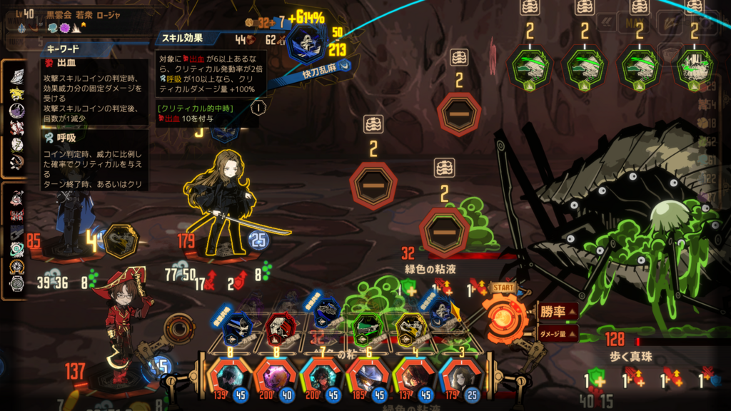 せっかく斬撃弱点だから使ってるけどやっぱパッシブ扱いにくいよ・・・クリティカルが出て回数が溶けるせいで使う前に消えちまう ただ、火力はそれ相応に出るのかトップ独走なんだよね・・・案外健全なのかも