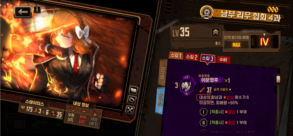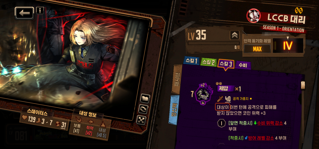 特に重要なのは敵がマッチ可能守備スキルを使い始めたことで、マッチ可能反撃を使ってくるターンにこの人格の速度を活かした一方攻撃でスキル2や3を差し込むと、大量の守備威力&防御レベル減少で強烈に守備スキルマッチを弱体化させることができるようになったこと。仕事が通常反撃を大幅に弱らせるだけじゃなくなった。