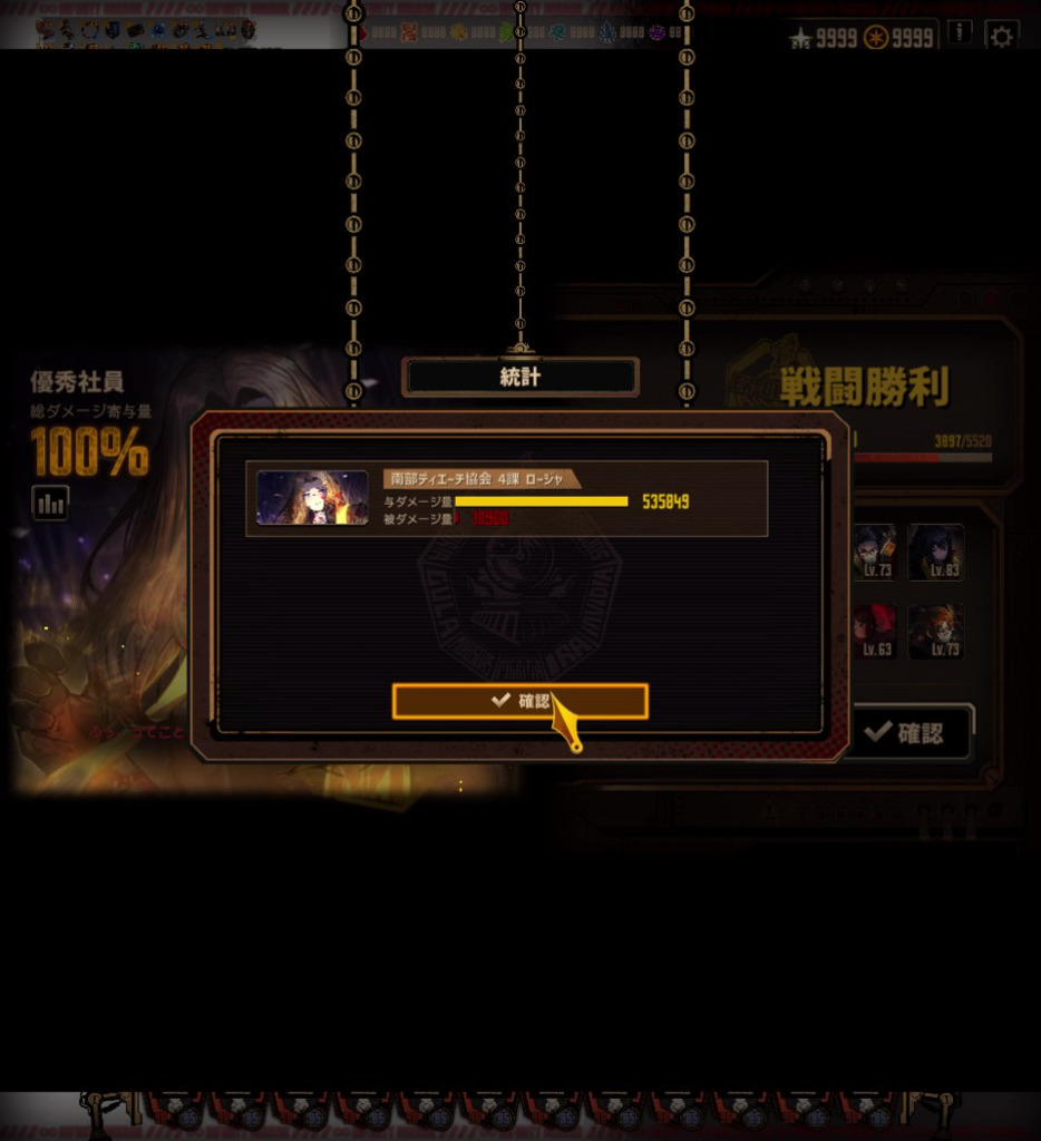 おめでとうございます!!DHロージャソロの者です。 もう一度ソロやってみました!45も50もほとんど変わりませんでしたね DH組とツヴァイシンクレア以外は自由枠ですので星あかりのために少しだけ編成変えてます。