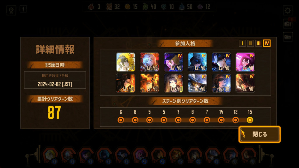 とりあえず最後までこの編成でクリア 最後の3駅うま いこと詰められればもっと短縮できそう…倒錯症くんのギミックは結局最後までよく分からず空間切断とか水袋でゴリ押し