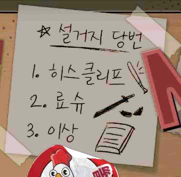 1枚目: 皿洗い当番 1.ヒースクリフ 2.良秀 3.イサン