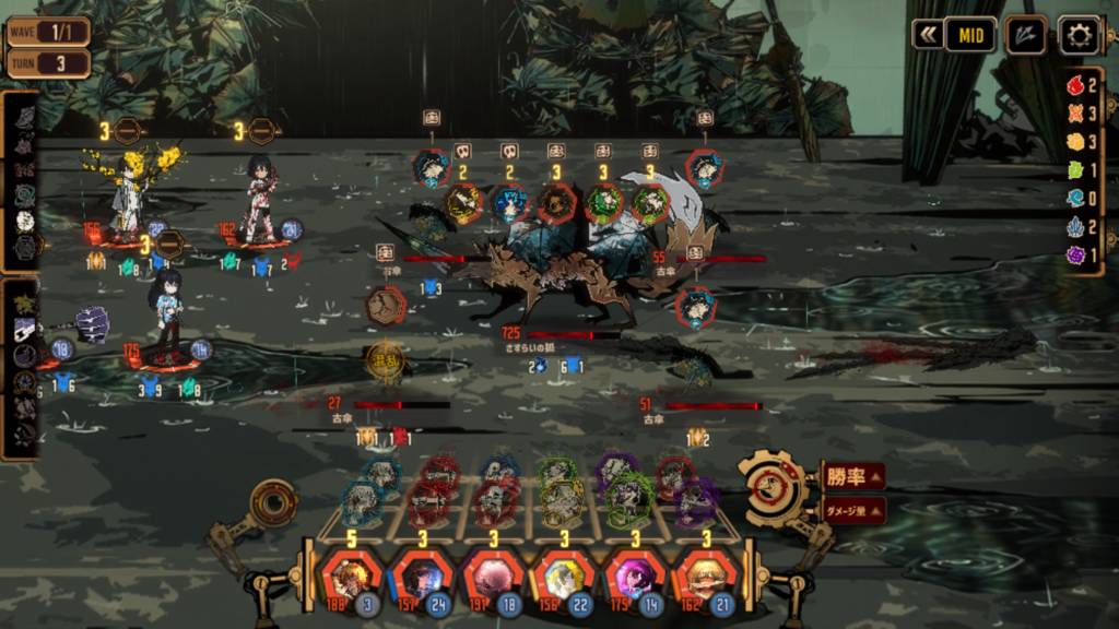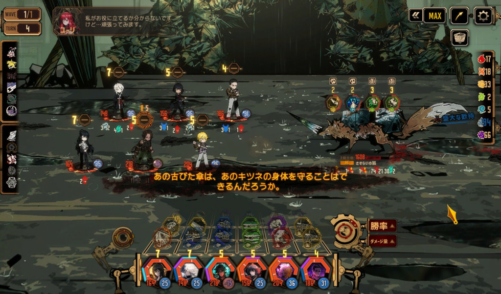 りょミパが300前後出してくれることもあるお陰か大体3ターン、上手くコントラタックが入れば2ターンで終わるな