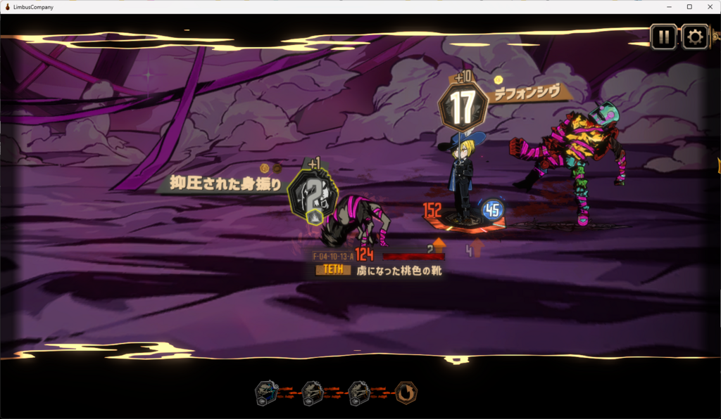 単騎テストしてて気づいたんだけど、ルミーズのコイン威力+1がその後の回避コインにも乗ってるっぽい? ルミーズ・ルミーズ・回避ってやったら回避で17出た(何もせず回避すると15)