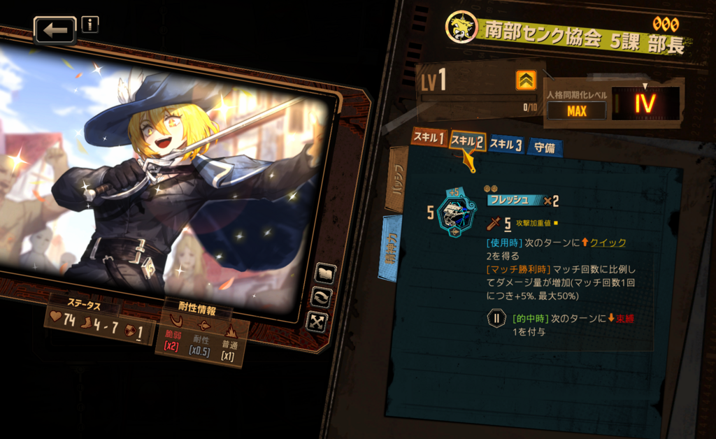 とにかくめちゃくちゃ速い上に自前で速さを上げられ更に速さで強化されるスキル持ち 単体で強いから扱いやすい 反面防御面はリウグレゴール並だけどまぁマッチにやたらと強いのであまり気にする所でもなさそう