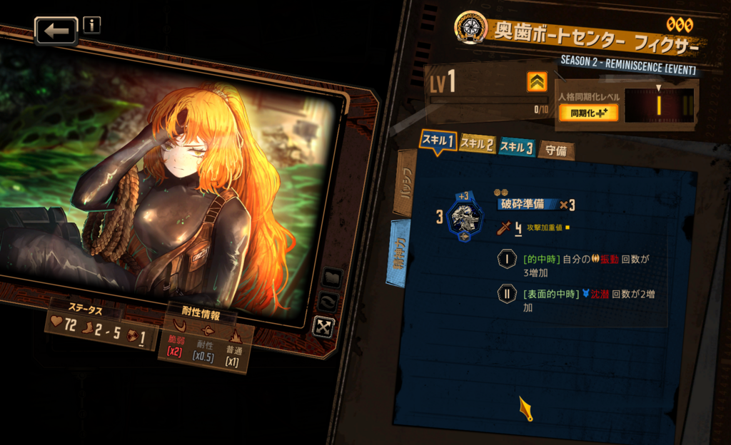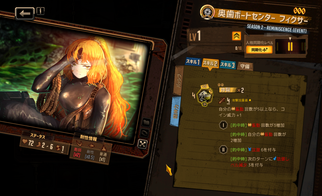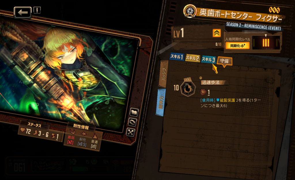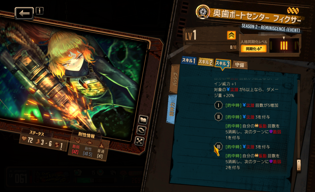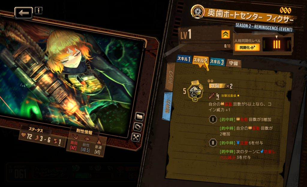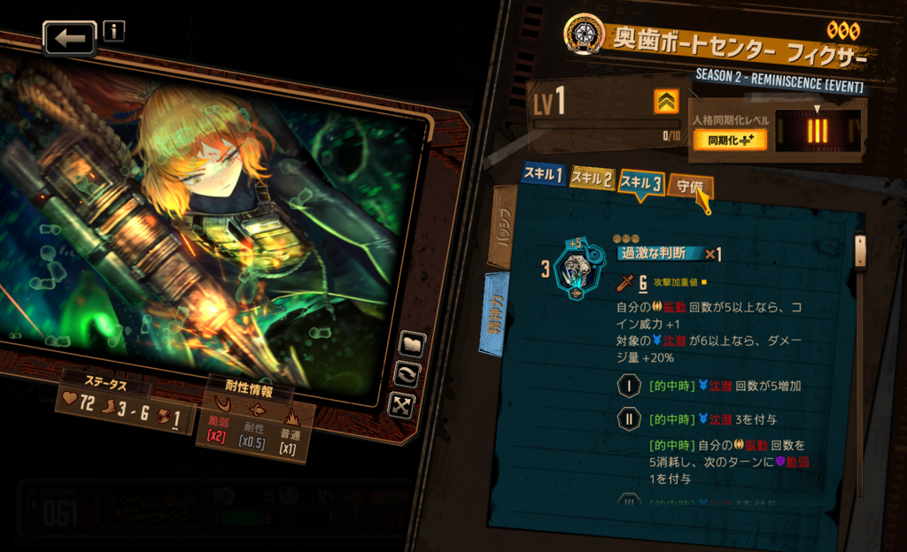 スキル属性構成はどうなるだろうか… 初期人格のような憤怒・憂鬱持ちを予想しているが、さしたる根拠はない
