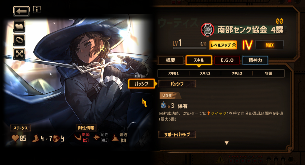 パッシブは回避成功でクイック1獲得と混乱区画後退 発動条件が緩い上に効果が強いので積極的に狙いたい