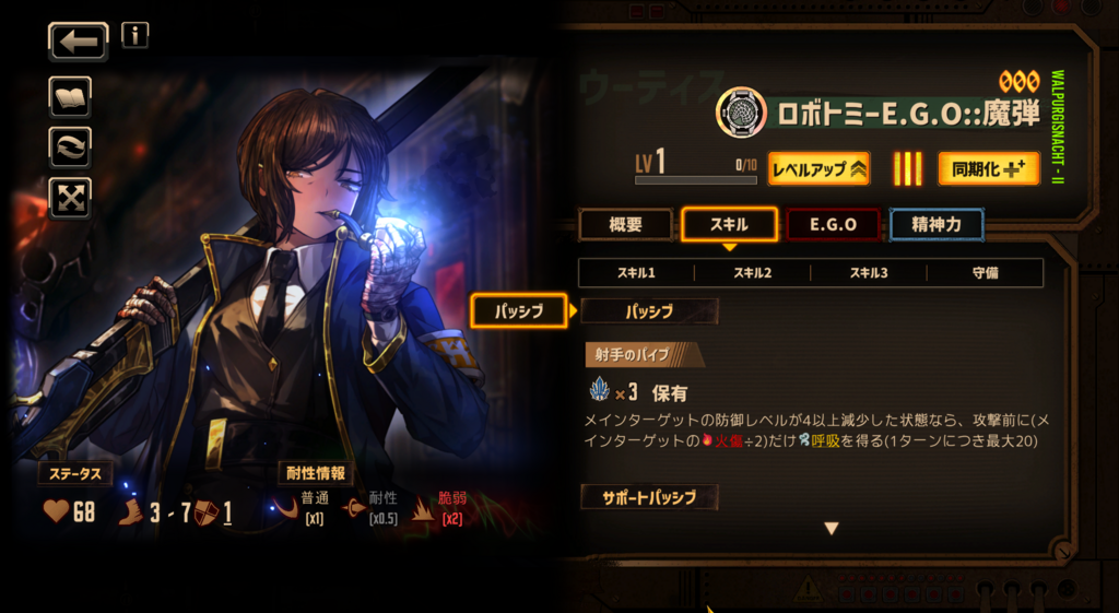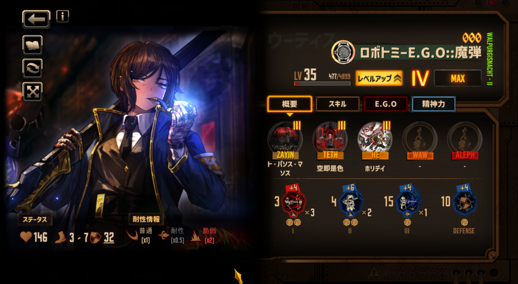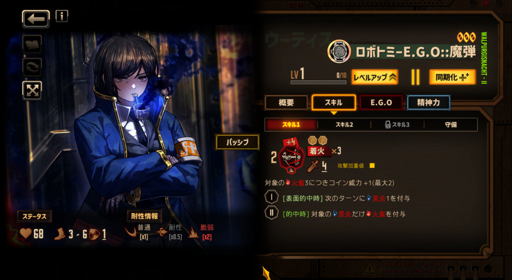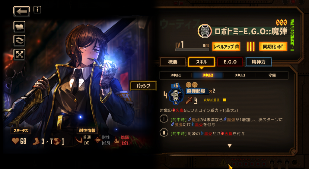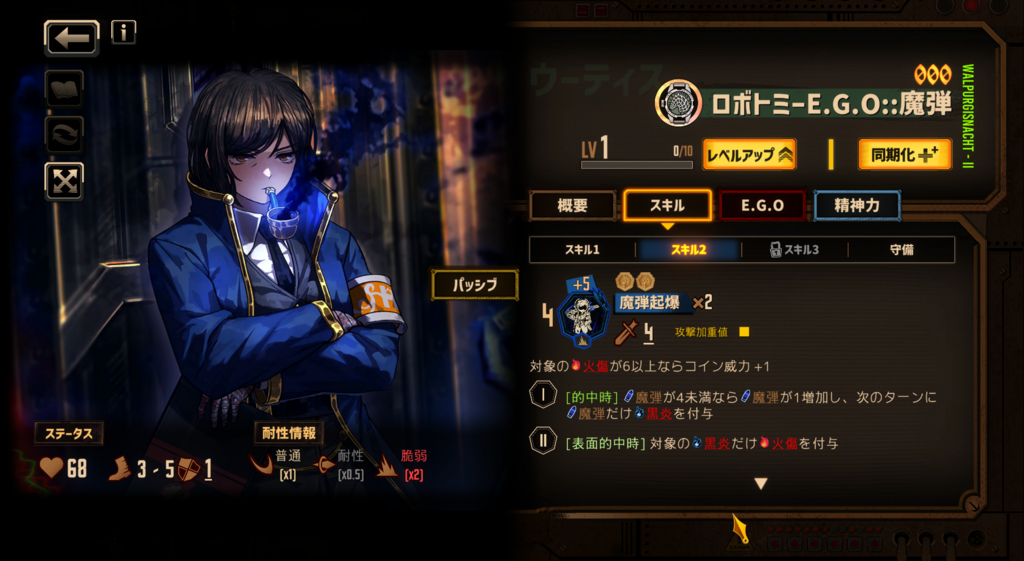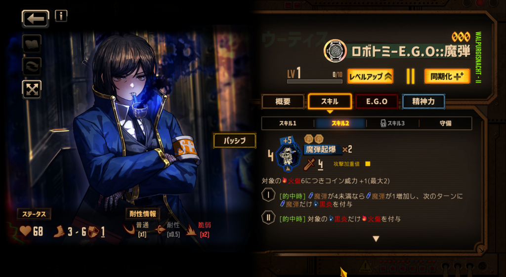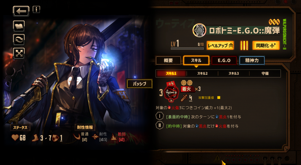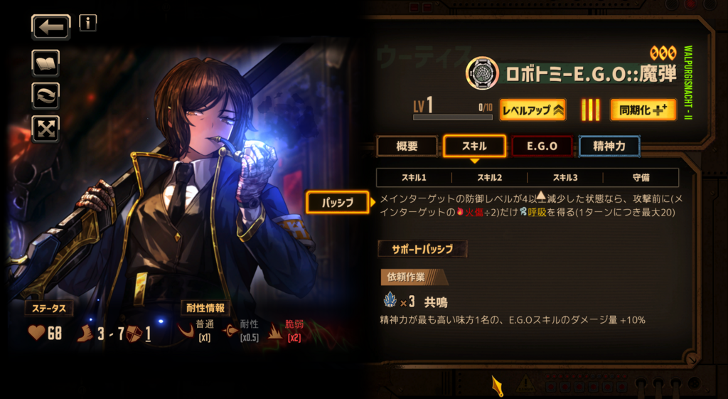 罪悪属性がモリヒースに続きスキル2・3の属性が一致してるキャラだね。 傲慢属性だと良いEGO何があるかな?