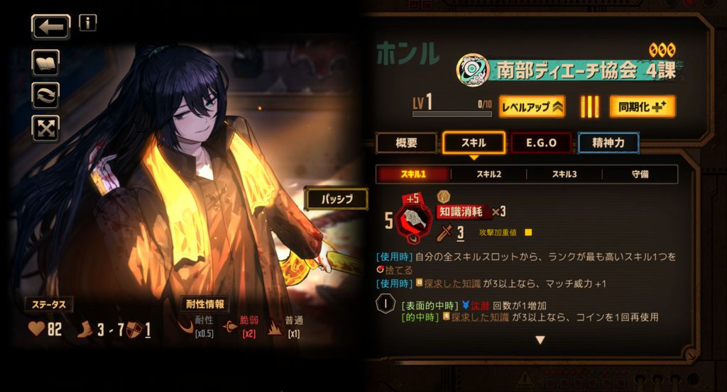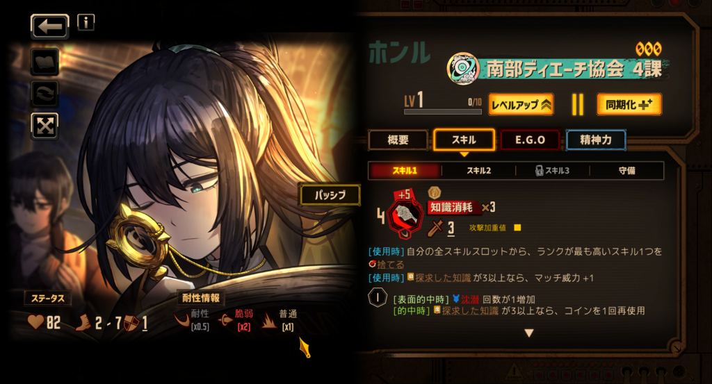 同期IVで探求した知識が3ならスキル1で10→15→20とかいう火力が出せる。スキル1の姿か?これが…… 回避スキルは捨てる対象にならないことを利用すると探求した知識の調整がやりやすいことをいい具合に生かして運用したいところ