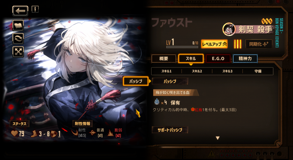 この人格が来たことで、ついに鏡でスキル1〜3全部血の霧発動する人格だけで福袋の条件も満たす編成が組めるようになった