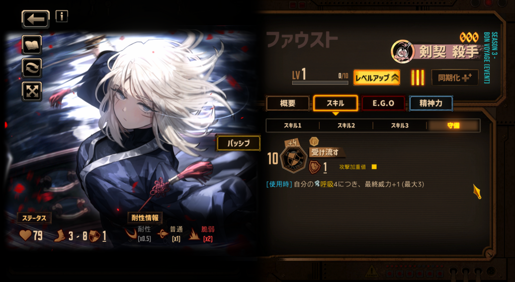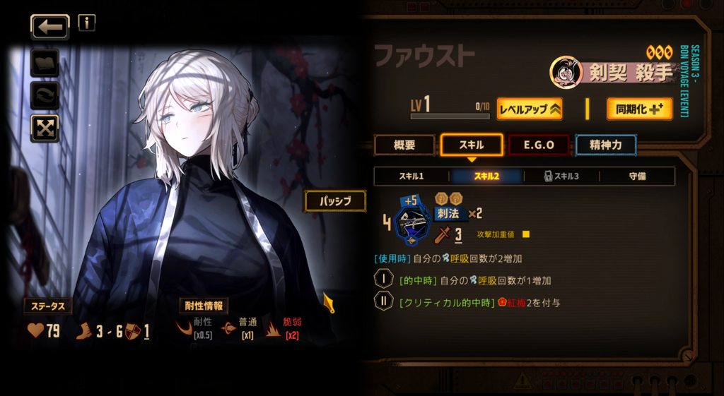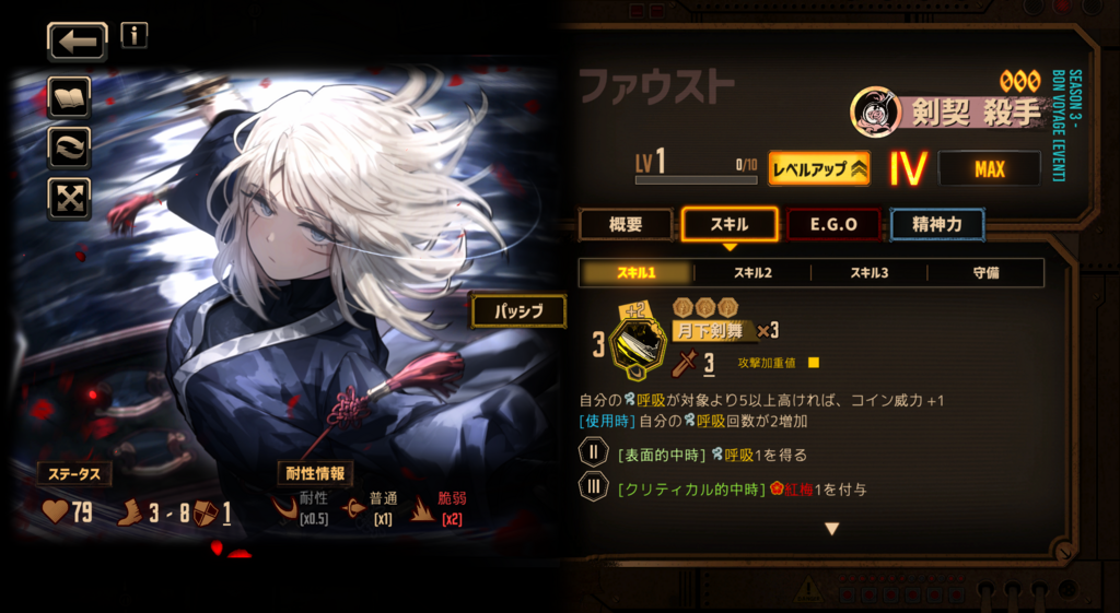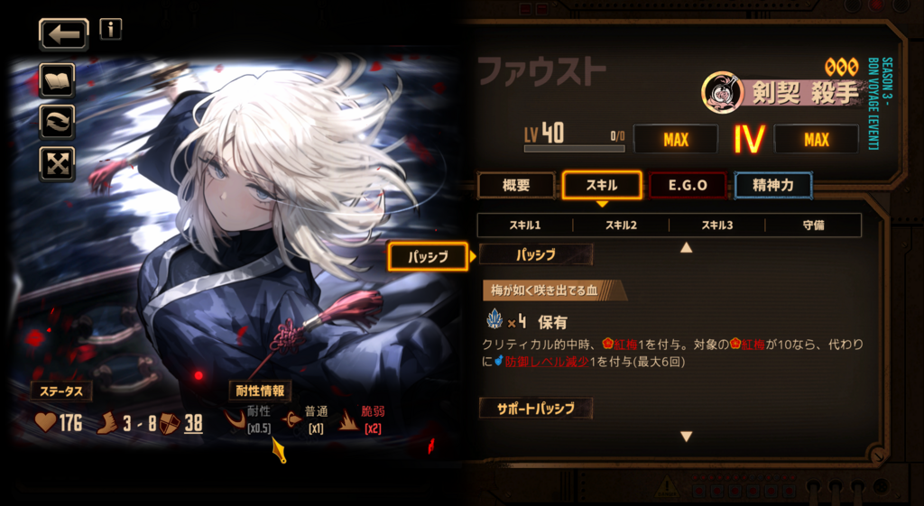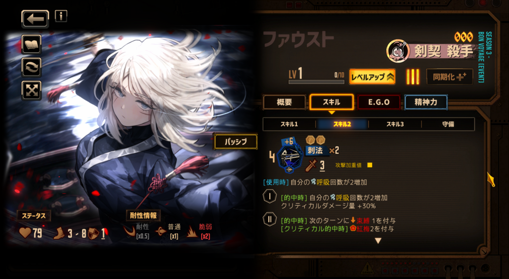他にどんなキャラ持ってるか知らんが、この2つを比較するならムルソー。