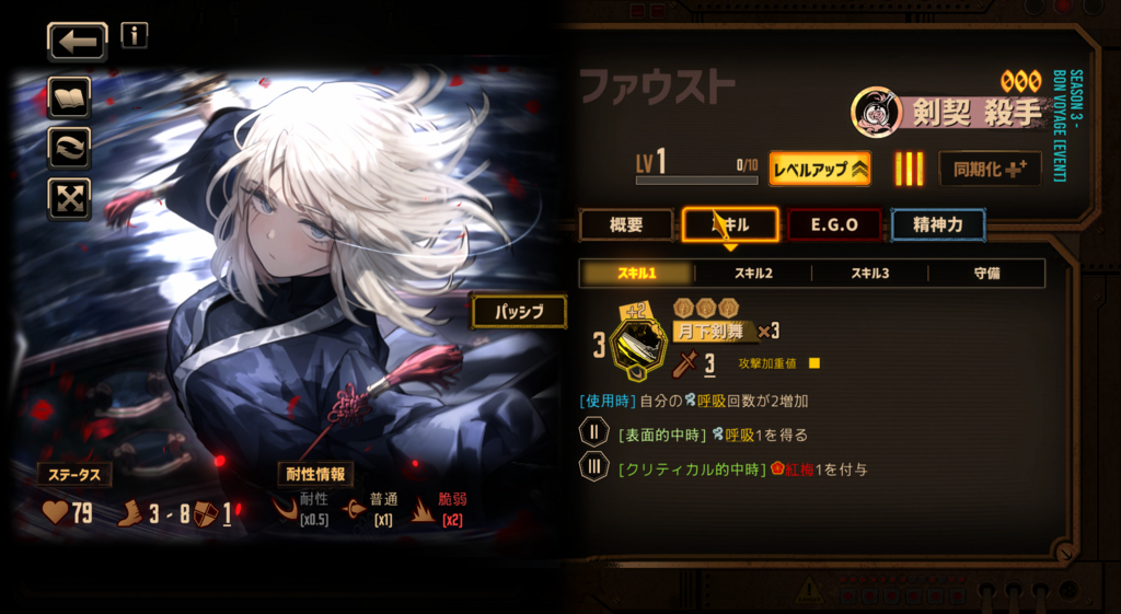 呼吸人格だからエンジン掛かるのがちょい遅いかなって感じはするけどゾーン入った瞬間マジでイカれた強さになるな? 出血にも呼吸にも組み込めるし満足