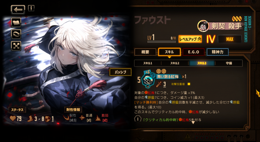 資源以外で見ても、 ・モーションが早い ・S1コイン値がぶっ壊れ って利点がある 当然血の霧前提だけど、S1で19出した時はぶったまげたよ…