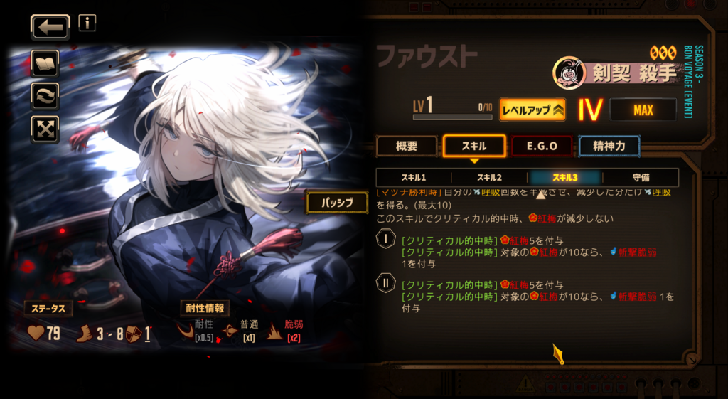 この人格が来たことで、ついに鏡でスキル1〜3全部血の霧発動する人格だけで福袋の条件も満たす編成が組めるようになった 肝心の福袋が全然揃わないけど
