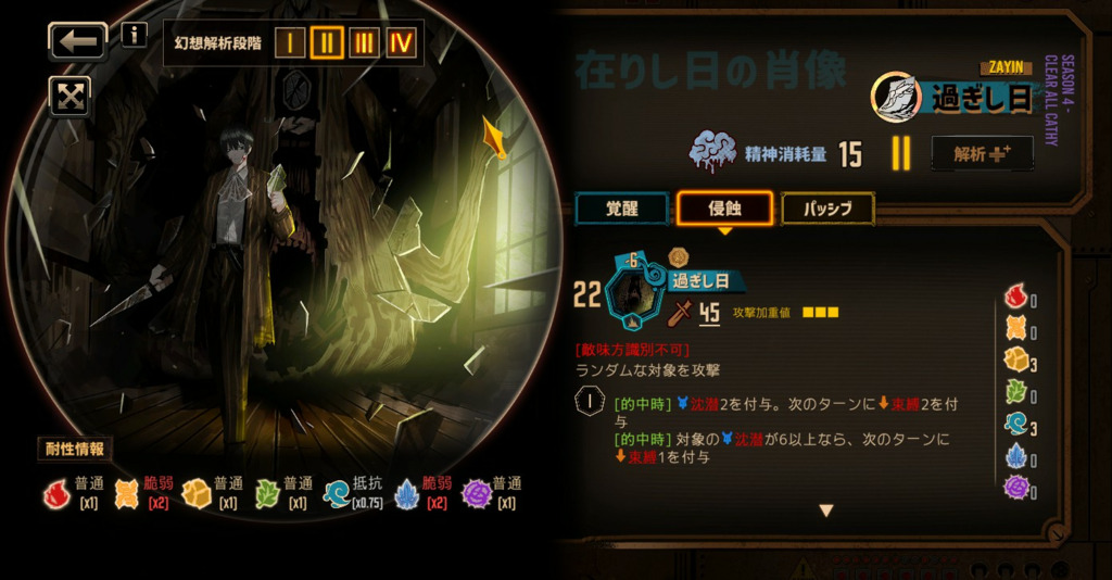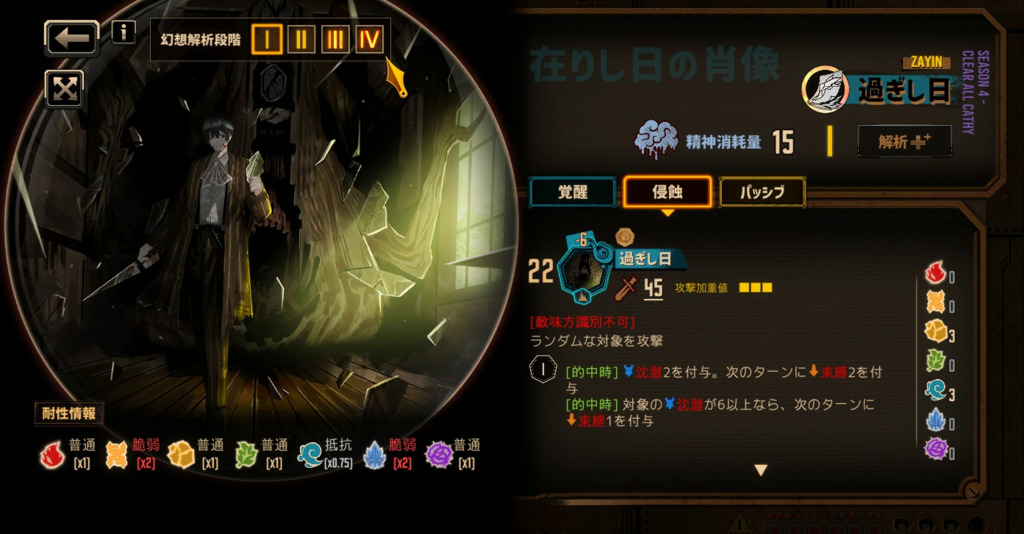 8章後編で個人的に一番評価が上がったegoかもしれない(多分前からめちゃつよだったけど気付いてなかった) 氷の脚ocより安いから早いターンで沈潜パのセットアップが出来て撃ったあとも尾を引かない 木霊を事前に入れておいたり憂鬱スキルを温存しておいたりと、1ターン以上前から考えることが増えるのが難点といえば難点 ...哀悼ego撃つ前に可能なら悪夢狩りしておくとか、火力出すターンに上から蝶イサンs3入れたいからパッシブでクイック得ておくとか、沈潜パは理想的に使おうと思ったらそんなんばっかだな