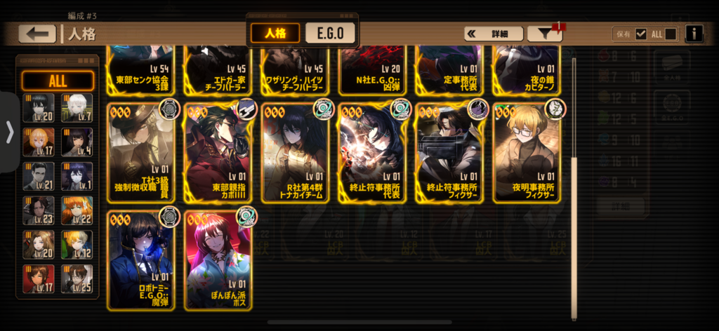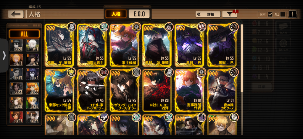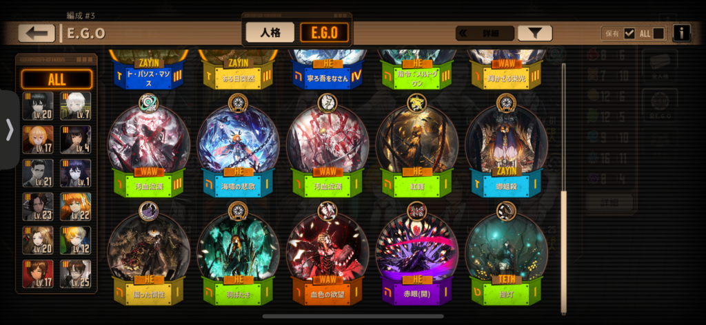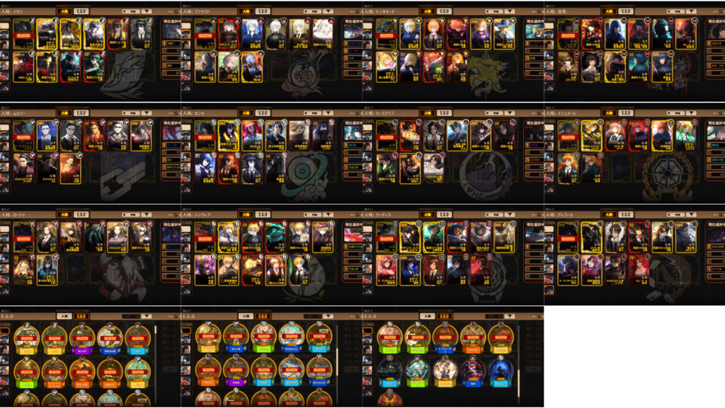 1.手持ちの人格中心に組めそうな編成と優先して欠片交換しておきたい人格/EGOを教えて欲しいです。