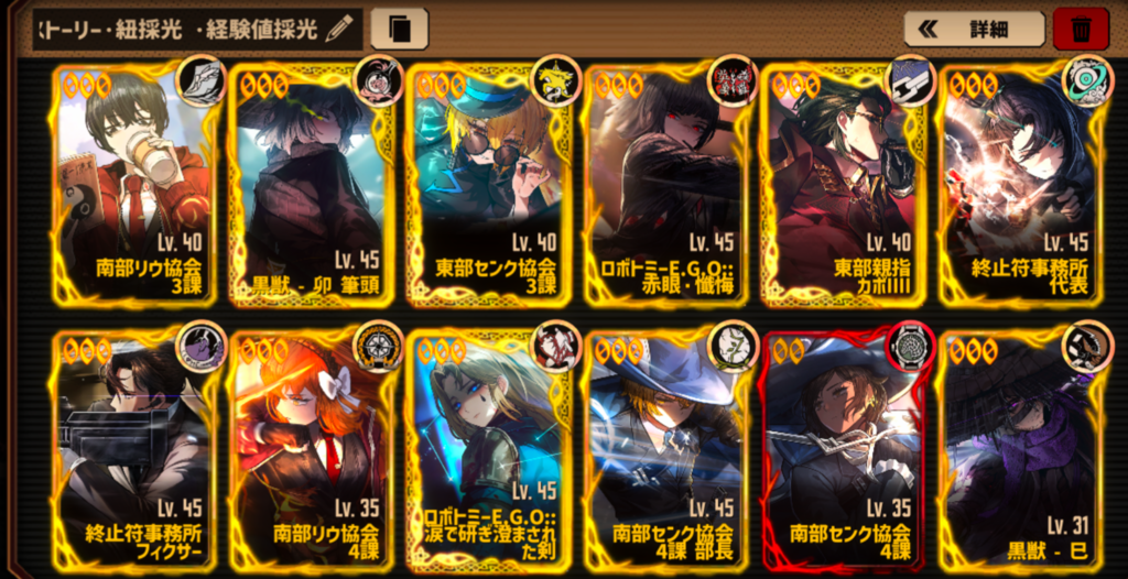 経験値素材が4人分しかないのですが、ここから破裂呼吸パのために黒獣グレ・終止符ヒースを同期IIIレベルマックスにするくらいしか思いついていません。