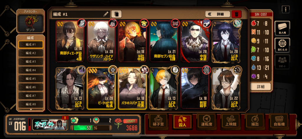 同期4の強化で要求コストが爆増するので、同期4にする人格はWikiのおすすめページなどを参考にするといいと思いますが、誰かひとりが同期4でほかが2や1のままになるくらいなら全員同期3にするほうを推奨します。(あくまで戦闘ベースの話なので、推しを強くしたい場合はこの限りではないです!)