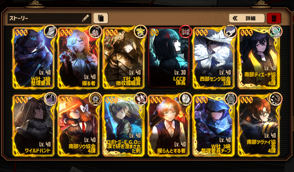今後の目標にした方がいいPTや交換したほうがいいキャラ、EGOがあれば教えていただきたいです。 (終止符セット→水袋or軽蔑 なのかなぁなんて考えてます) よろしくお願いします