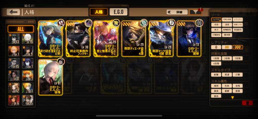 現在の所持状況からおすすめ編成、次に取得すべき人格、EGOを教えていただきたいです。