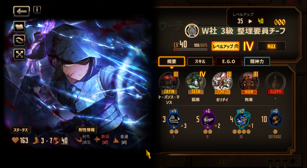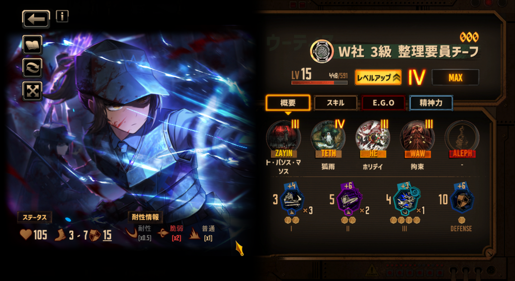 Wウーティスは充電を累積することで他のW社人格を強化できるので、長期戦でターンが増すほどダメージが伸びやすくなっていく。今回の鉄道みたいに一つの戦闘で複数のボスと戦う方式だと特に輝きそう(まだ試してない)