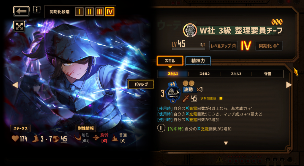 地味にS3がデメリットなしでそこそこの威力あるうえに充電も稼げるのは評価点だよね。全部のスキルが起点になるからW社人格としては屈指の安定感を持ってる