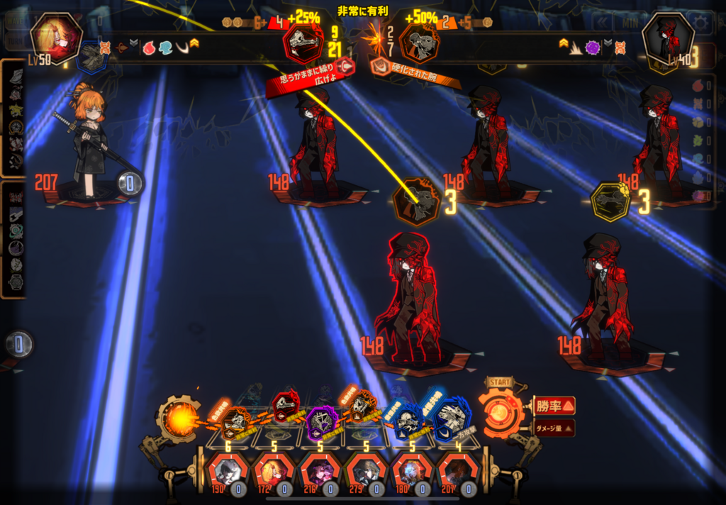 鑑ハードでこのパックの精鋭戦闘の敵とマッチすると、味方が異常な威力でマッチ勝ちするから何だろうと思ったら、一部の敵の攻撃レベルがストーリーの時と同じに設定されてるね 少なくとも鏡ハード最終層で攻撃レベル37はあり得ないしバグだろうな (画像はスキル1で最大値25 を出すファウスト嬢)