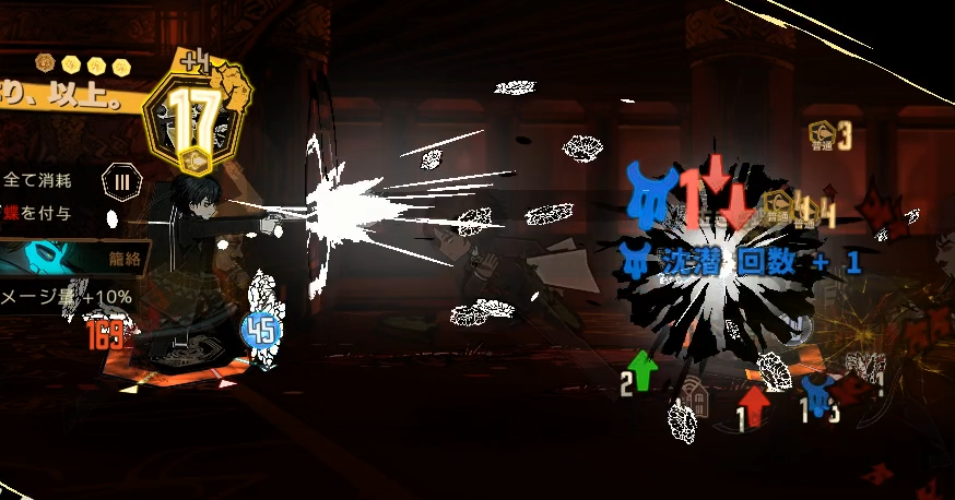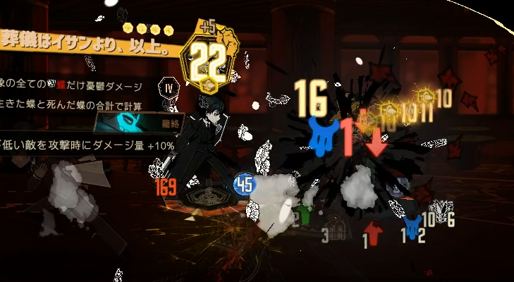 死んだ蝶は付与された相手に攻撃すると消費して沈潜デバフの数だけダメージを加算する。