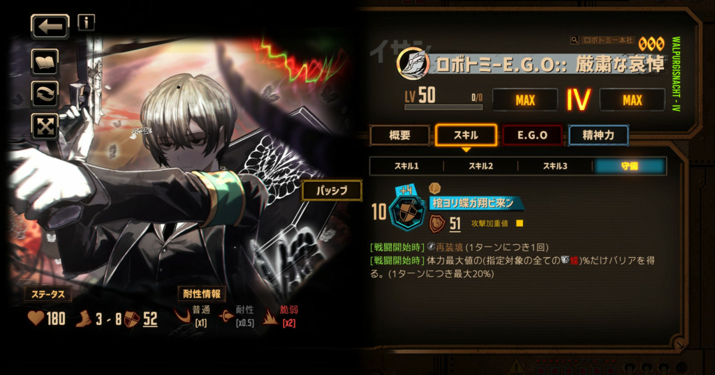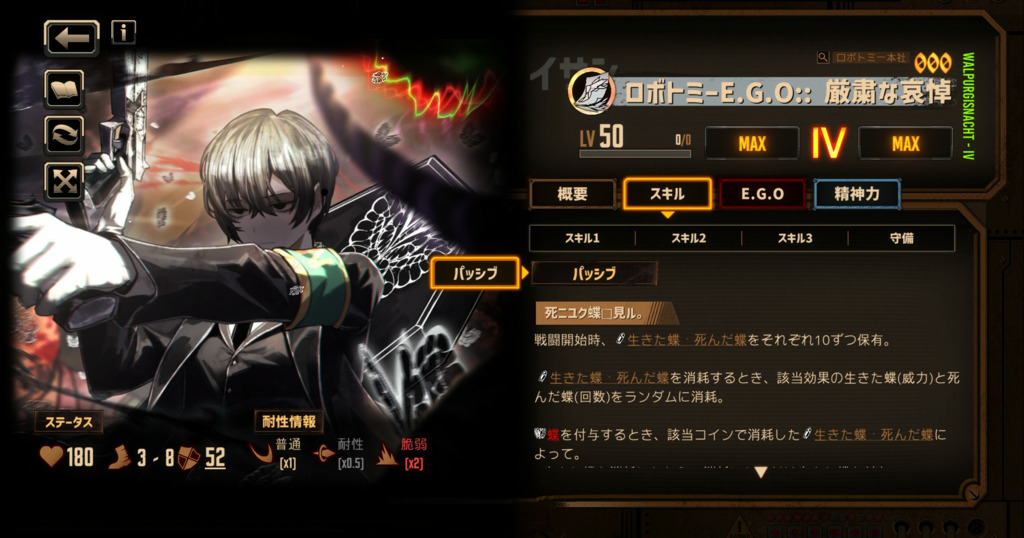 E.G.O2本持ってその上で黙らせる良秀とか、イカれた理論を精神的に実行することで魔弾を従えるウーティスなんかと比べると明らかにE.G.Oに振り回されてるか、それとも共鳴し過ぎてる感があるよね